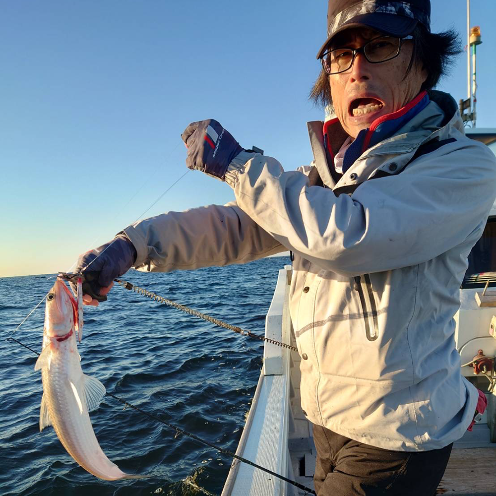 しばらくして着底後しゃくり始めてすぐにヒット。一瞬重かったけど、案外抵抗少なく上がって来るのでなんだろうと思ったら40cmほどのエソさんでした(≧∀≦) うまく調理して食べると美味いと聞きますが、調理の仕方がわからないので船縁で即リリース。
